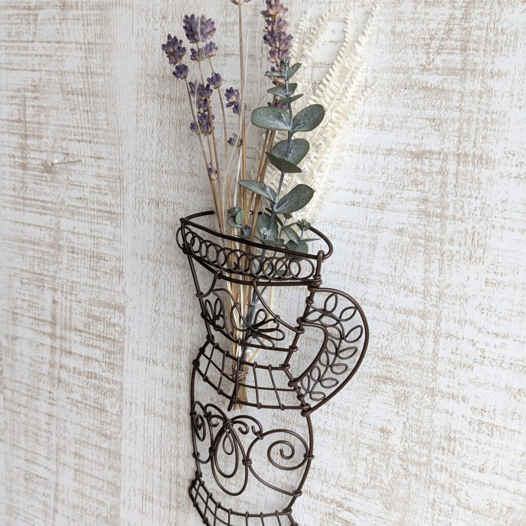 写真は生きてる観葉植物で飾りましたが、花瓶を入れるタイプではないので(入れようと頑張ればいけるかも😄)実際は、フェイクフラワーやドライフラワーを飾っていただくタイプ。