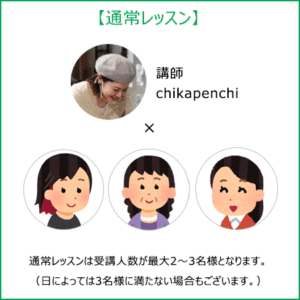「通常レッスン」の場合は、最大受講人数が2〜3名となります。(最大受講人数は各レッスンページに記載があります)。