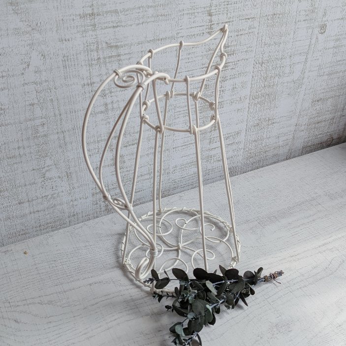 こちらの作品は出来上がりサイズの割にはワイヤーを細め(骨格が2.0mm)にしています。作りやすさ優先なのと、重いものをがっつり入れて、作品自体に支えてもらうようなものではないからです。